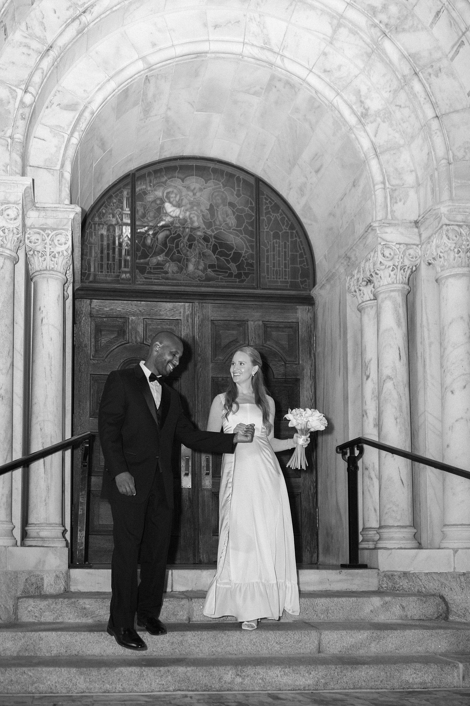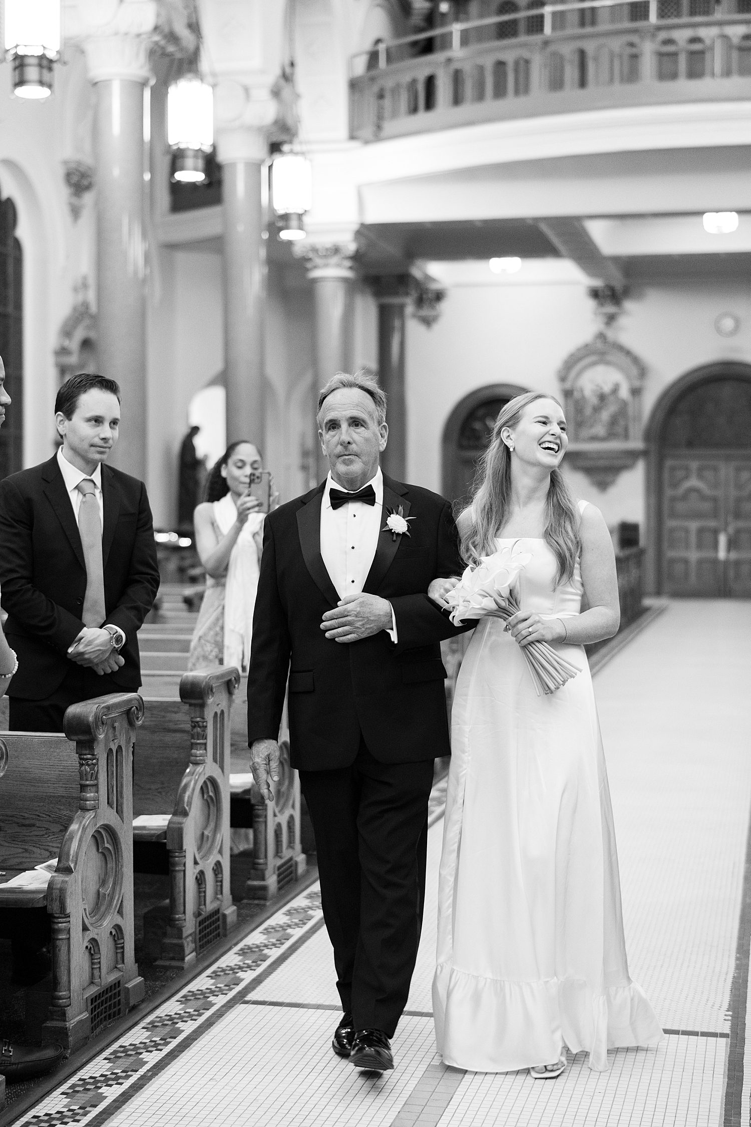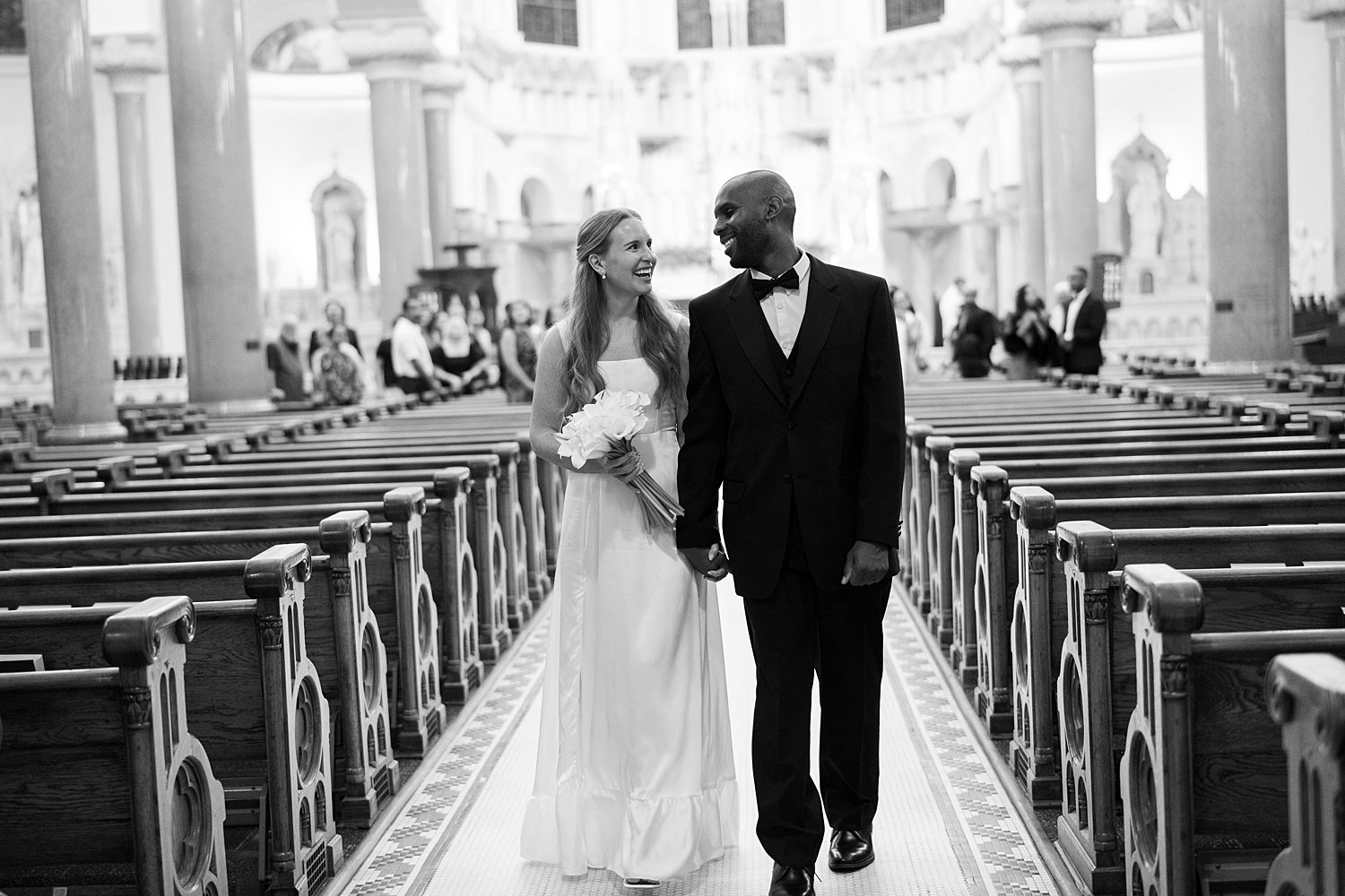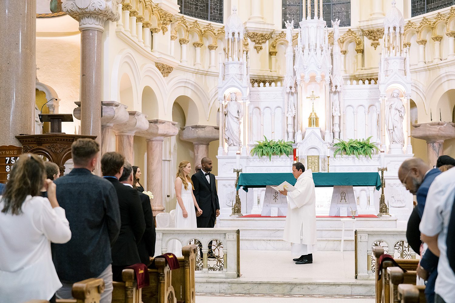Jessica radiated happiness as she walked down the aisle holding a simple white bouquet, in her classic, flowy white gown. After meeting Michael at the altar, they had a beautiful catholic wedding ceremony before exiting as husband and wife, again. Their wedding photos capture all the grandeur of the space, highlighting the breathtaking architecture both inside and out.